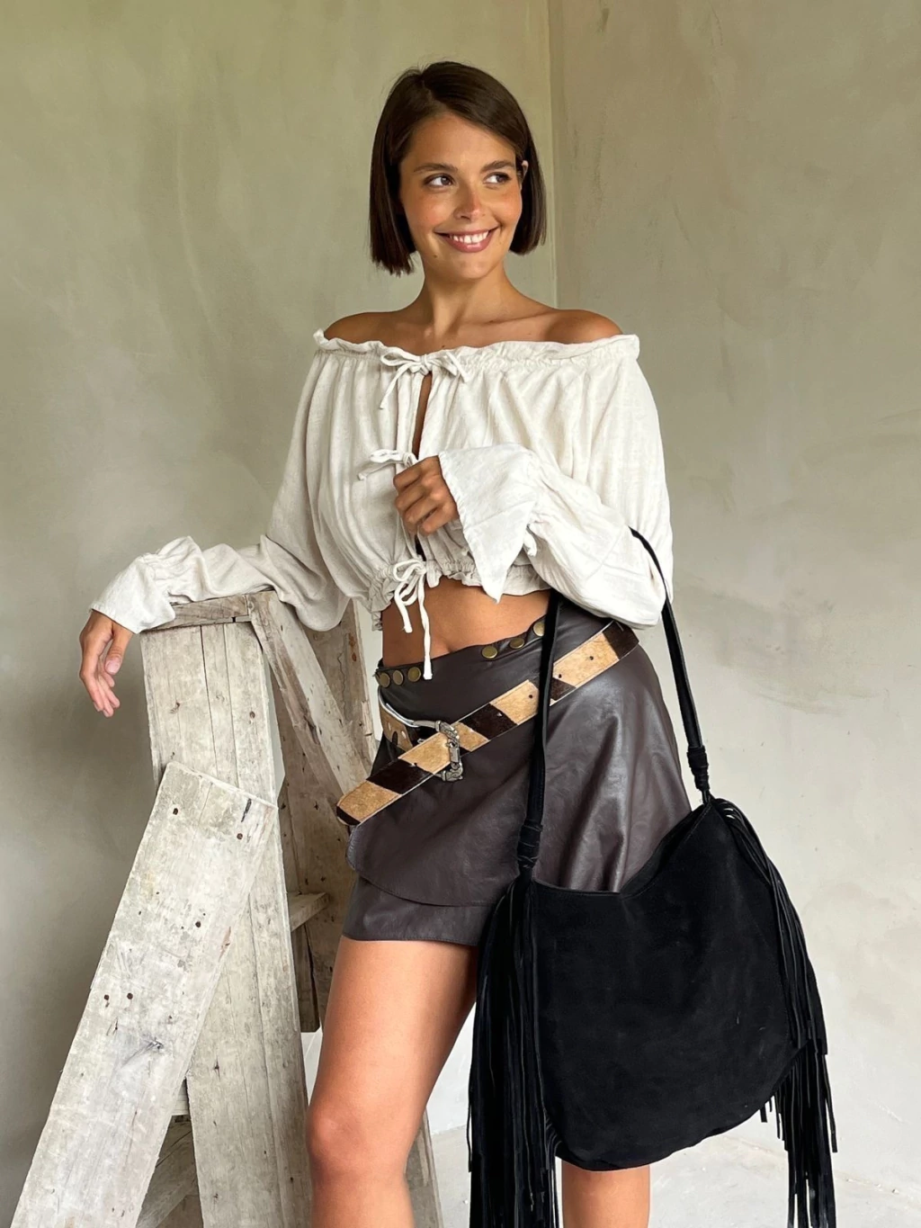 Falda confeccionada con cuero vacuno, hecha a mano 🫀🤚 Sistema de cierre con botones a presión a lo largo de la cintura lo cual permite la amplitud de talles. CORRESPONDE A UN TALLE S/M UNA VEZ HECHA LA COMPRA EL TIEMPO DE CONFECCION ESTIMADO ES DE UNA SEMANA SIN CONTAR LA DEMORA DEL ENVIO