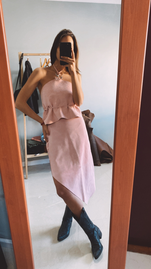 . Top con espalda descubierta. Es regulable por su manera de atar tanto en la espalda como en el cuello, el largo depende del corte natural del cuero por lo que CADA TOP ES DISTINRO